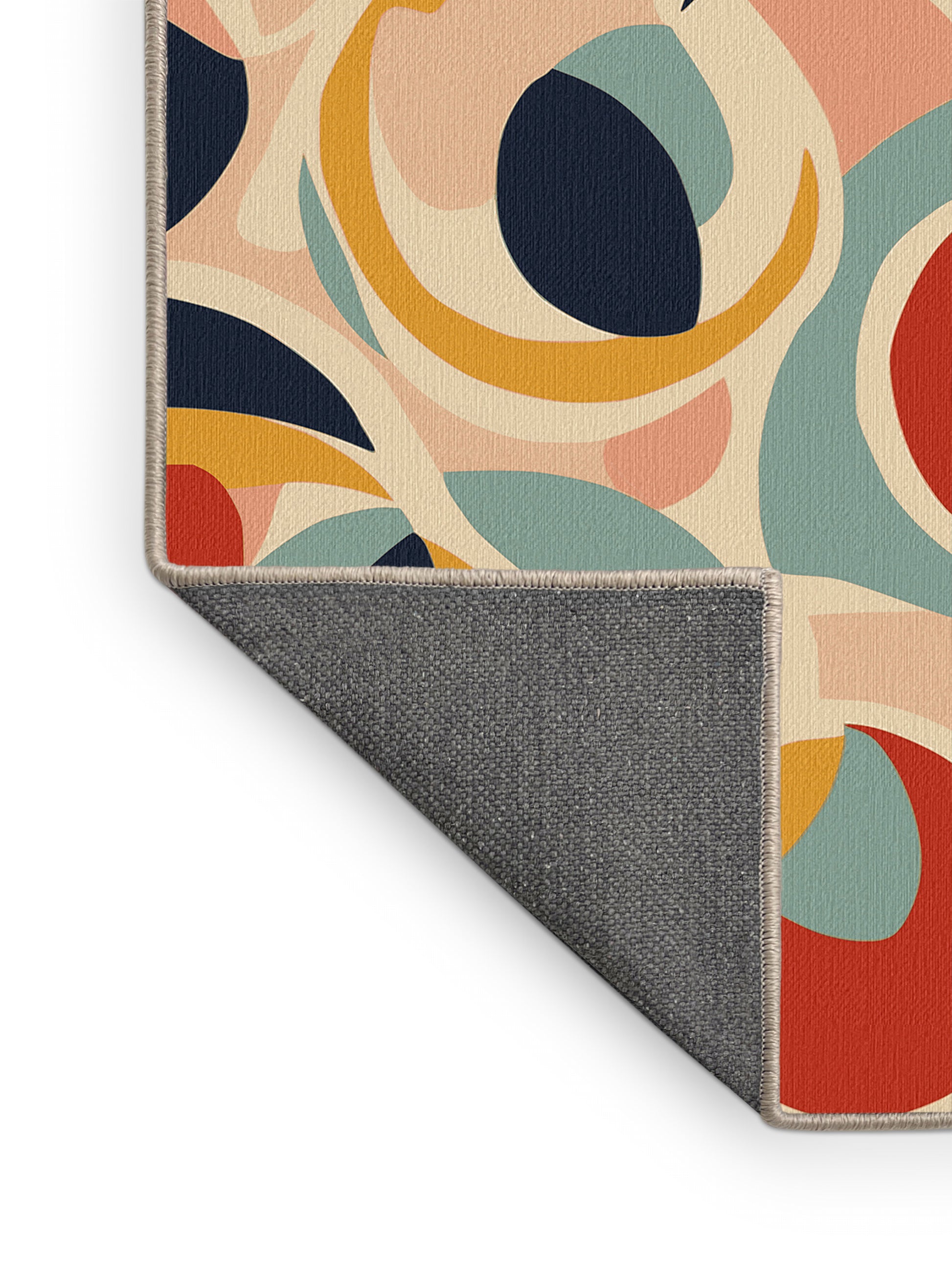 Zippy Streak from the Retro Ruckus collection revives the bold, playful charm of mid-century modern design with its captivating Tan (W3C) color (A classic tan with a soft and neutral appearance.), a vibrant tone in the Beige color family. Featuring a dynamic mix of geometric patterns, freeform swirls, and abstract shapes, this rug brings a nostalgic yet modern aesthetic to your space. Finished with Beige serging a durable edge that enhances its retro flair this rug is crafted from premium polyester and machine-made in the USA with imported materials. Perfect for eclectic living rooms, creative studios, or retro-inspired dining areas, this design adds warmth, personality, and energy to your decor. Available in multiple sizes, the Retro Ruckus collection seamlessly blends vintage aesthetics with contemporary functionality, transforming your home with its unique style and durable comfort.